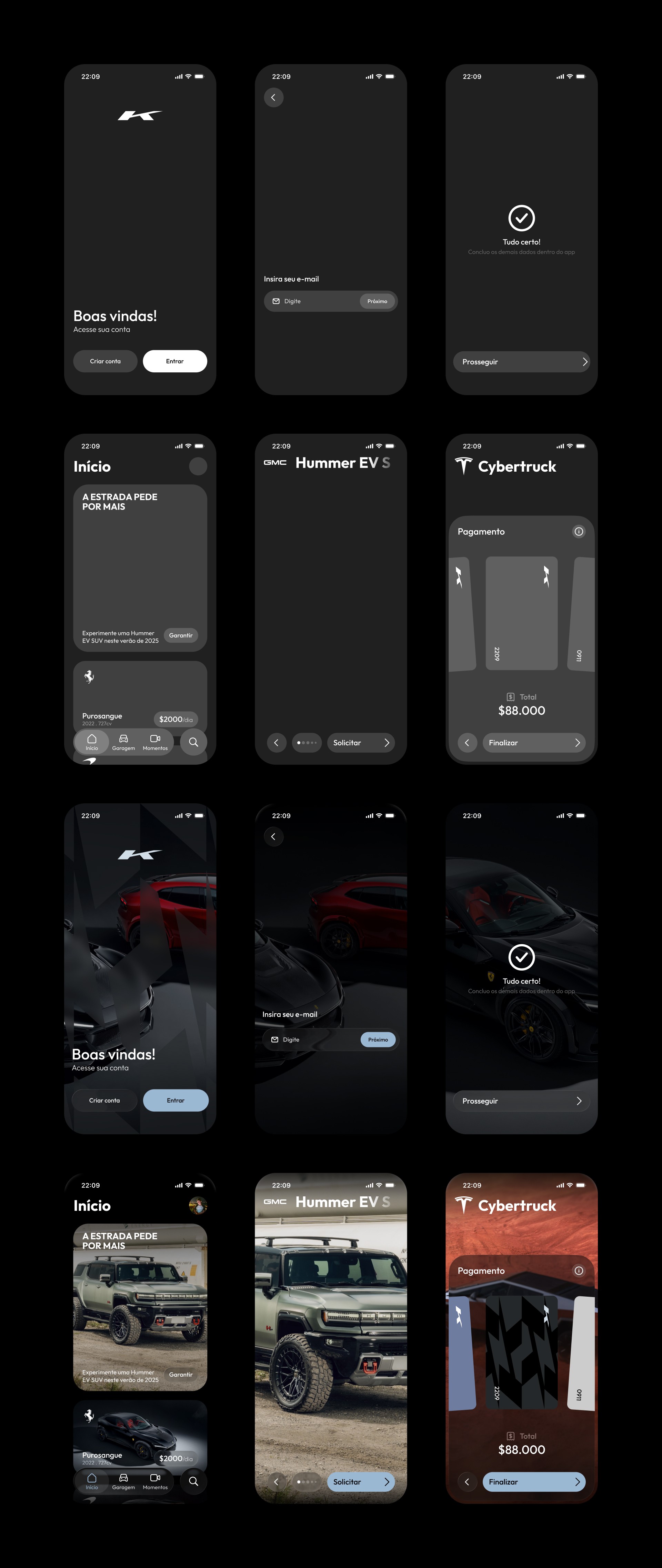 A Skursion© é uma empresa estadunidense de aluguel de veículos premium. Seu nome combina o termo do rap “skrrt”, referência à derrapada de pneu, com “excursion”, traduzindo a ideia de passeio ou viagem. A marca fala para um público que busca exclusividade, presença nas ruas e sensação de pertencimento, traduzindo seu manifesto em um tom ousado e autêntico. O aplicativo da Skursion© reflete essa identidade de forma simples e intuitiva: minimalista, em Liquid Glass, com elementos que reagem ao toque e ao ambiente, proporcionando uma experiência fluida e sensorial. O destaque fica para a aba Momentos, onde é possível registrar experiências com seu veículo alugado e utilizar o Filtro Skursion©, parte da identidade autêntica da marca americana. Além disso, a plataforma oferece um vasto catálogo de veículos de alto desempenho de diversas marcas luxuosas, tornando fácil alugar o carro desejado e retirá-lo na locadora mais próxima.